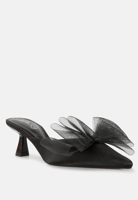 Asma Organza Bow Embellished Satin Mules
