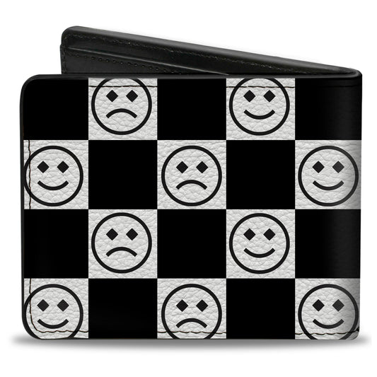Bi-Fold Wallet - Smiley Sad Face Checker Black/White