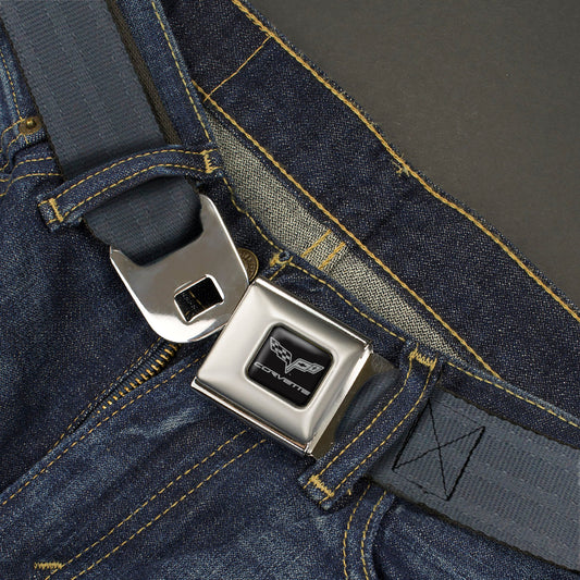 BD Wings Logo CLOSE-UP Full Color Black Silver Seatbelt Belt - Girlie Skull Gray Webbing