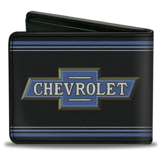 Bi-Fold Wallet - 1916 Chevrolet Bowtie Logo Stripes Black Blue