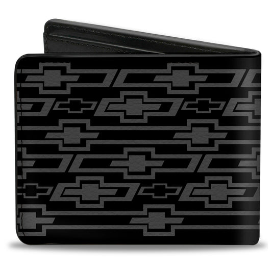 Bi-Fold Wallet - Retro Chevy Bowtie Diagonal Monogram Black Gray