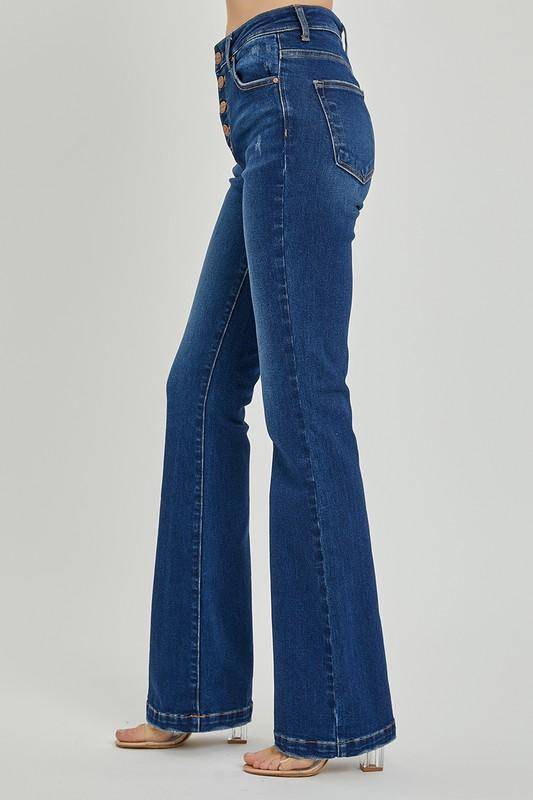 Risen Mid-Rise Wide Leg Dark Wash Jeans