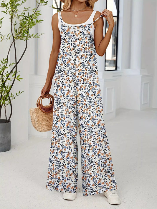 Printed Ruffled Hem V-Neck Sleeveless Dress