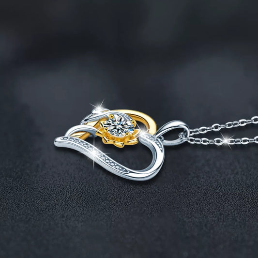 1 Carat Two Tone Heart-Shaped Pendant Necklace