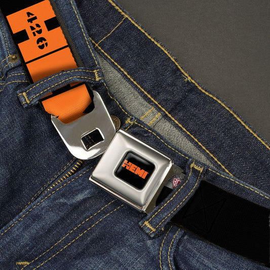 HEMI 426 Logo Full Color Orange/Black - Seatbelt Belt - Black Webbing