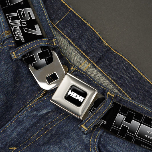 HEMI Bold Full Color Black/White Seatbelt Belt - HEMI 5.7 LITER Black/White/Silver-Fade Webbing