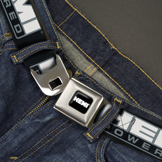 HEMI Bold Full Color Black/White Seatbelt Belt - HEMI POWERED Logo Black/Gray/White Webbing