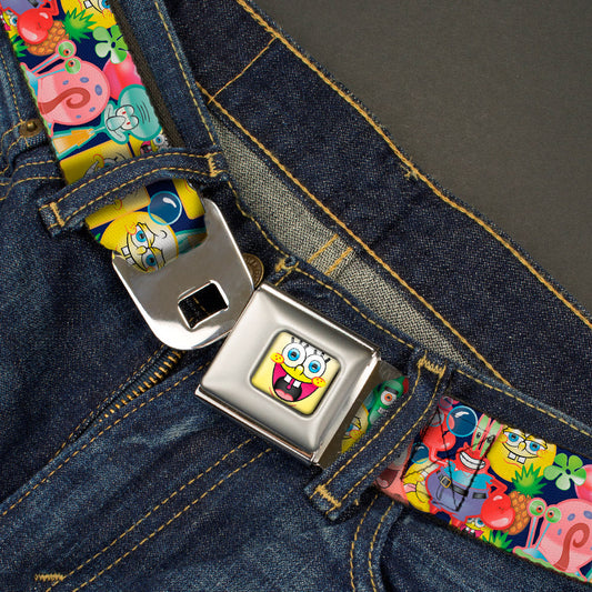 SpongeBob Open Mouth Smile Full Color Seatbelt Belt - SpongeBob Expressions & Friends Stacked Webbing