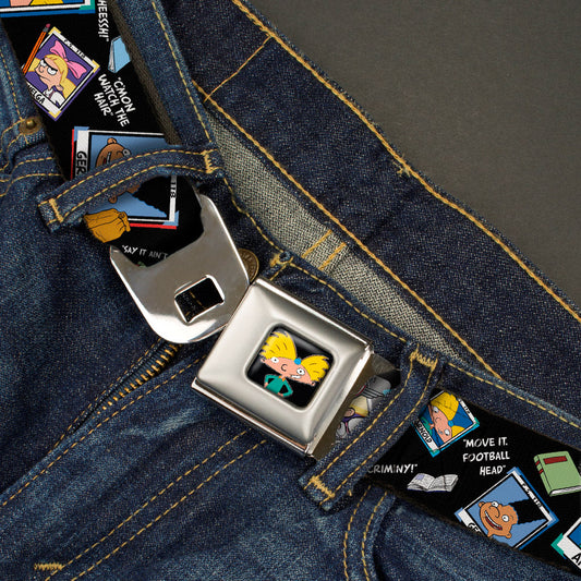 Arnold Pose Full Color Black Seatbelt Belt - Hey Arnold Class Pix/Quotes ARNOLD/GERALD/HELGA Webbing