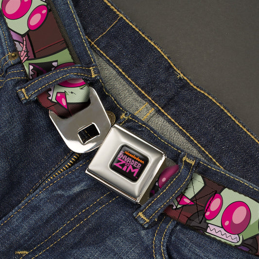 INVADER ZIM Title Logo Full Color Pink/Green Seatbelt Belt - Invader Zim Close-Up Poses Reds Webbing