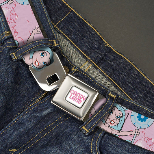 CANDY LAND Game Logo White/Pink Seatbelt Belt - Candy Land Queen Frostine Pose and Float Bubbles Pinks Webbing