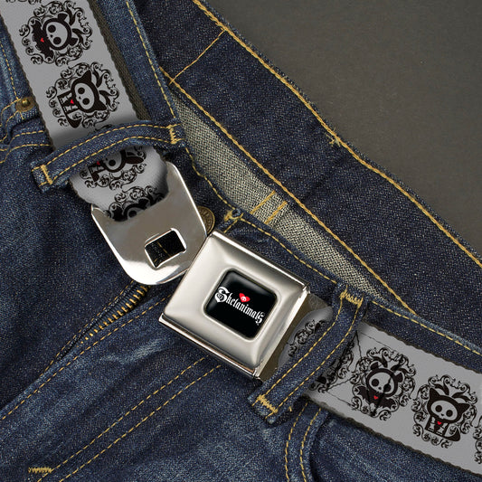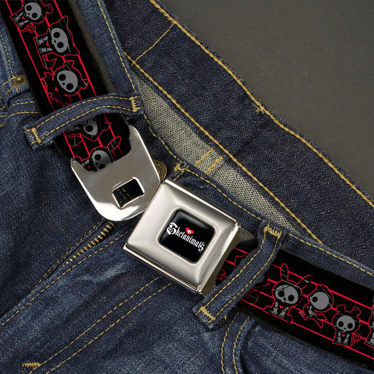 SKELANIMALS Title Logo Full Color Black/White/Red Seatbelt Belt - Skelanimals Diego Jack Kits Portraits Gray/Black Webbing