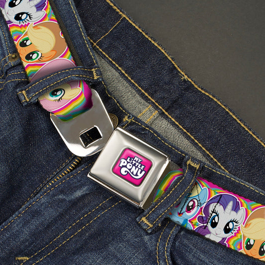 MY LITTLE PONY Title Logo Full Color Pink/Purple/White Seatbelt Belt - My Little Pony Four Pony Close-Up Faces Pink/Multi Color Webbing