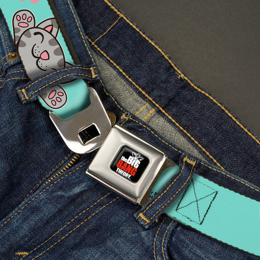THE BIG BANG THEORY Full Color Black White Red Seatbelt Belt - Soft Kitty Poses Pale Turquoise/Pink Webbing