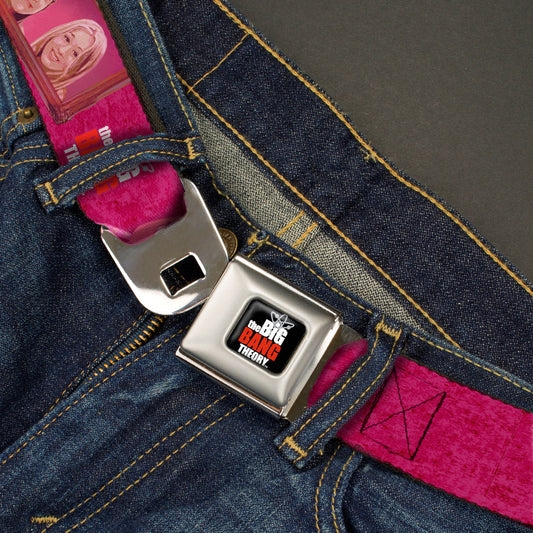 THE BIG BANG THEORY Full Color Black White Red Seatbelt Belt - Amy & Penny Sketch/Portrait BESTIES Pinks/White Webbing