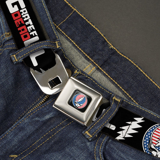 Grateful Dead Steal Your Face Stars and Stripes Logo Full Color Black/White/Red/Blue Seatbelt Belt - GRATEFUL DEAD Text with Steal Your Face Stars and Stripes Logo Black/White/Red/Blue Webbing
