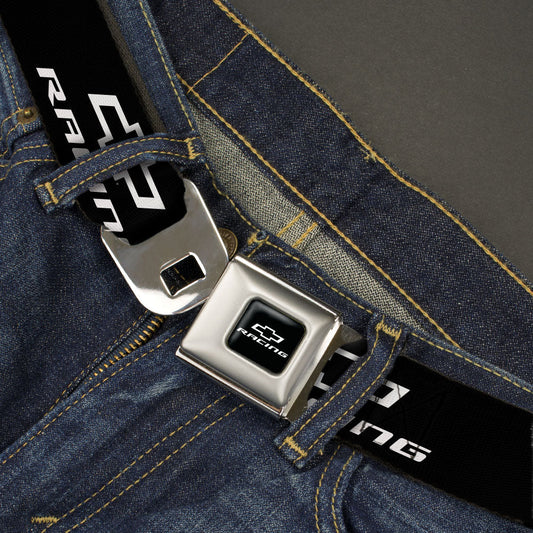 Chevy Bowtie RACING Logo Full Color Black/White Seatbelt Belt - Chevy Bowtie RACING Logo Black/White Webbing