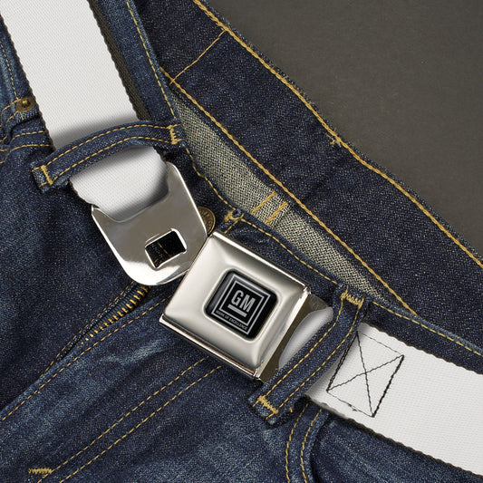 Chevy Seatbelt Belt - Diagonal Retro Chevy Bowtie Stacked Black/Blues Webbing