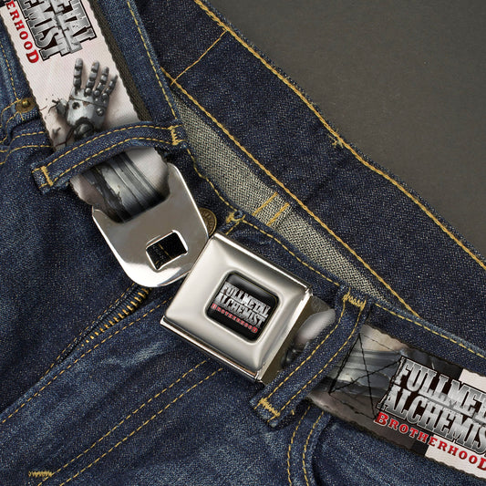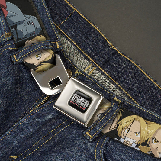 FULLMETAL ALCHEMIST BROTHERHOOD Title Logo Full Color Black Seatbelt Belt - Fullmetal Alchemist Brotherhood Elric Brothers Pose Blocks Webbing