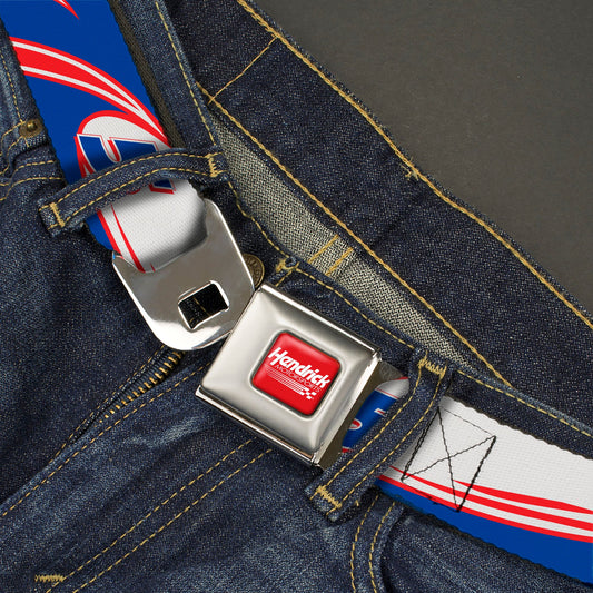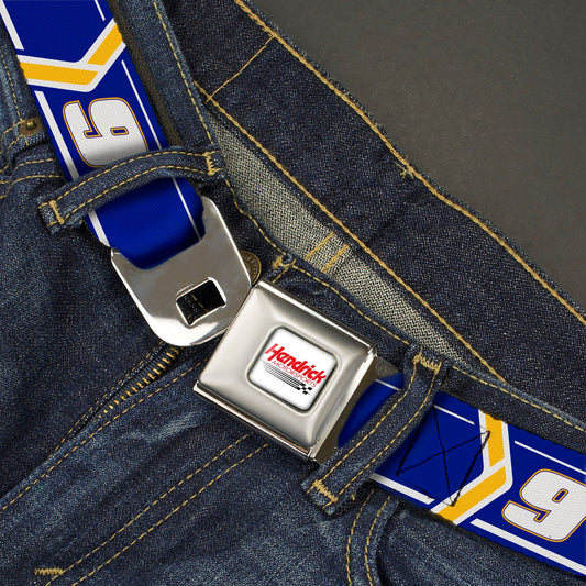 HENDRICK MOTORSPORTS Checker Logo Full Color Red/White Seatbelt Belt - Chase Elliott #9 Car Scheme Blue/Yellow/White Webbing