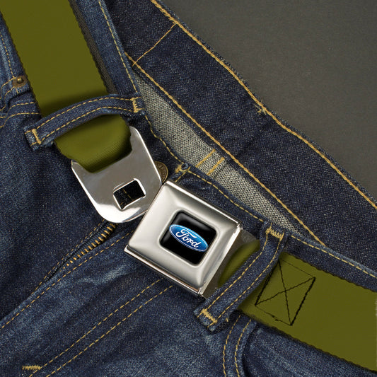 Ford Oval Full Color Black/Blue Seatbelt Belt - Olive Webbing
