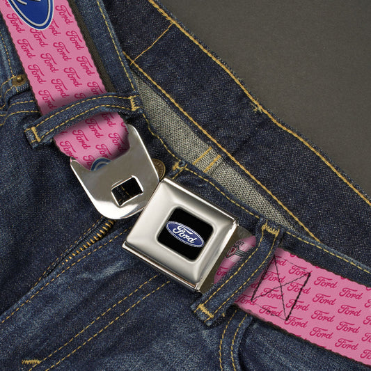 Ford Oval Full Color Black Blue Seatbelt Belt - Ford Oval w/Text PINK REPEAT Webbing