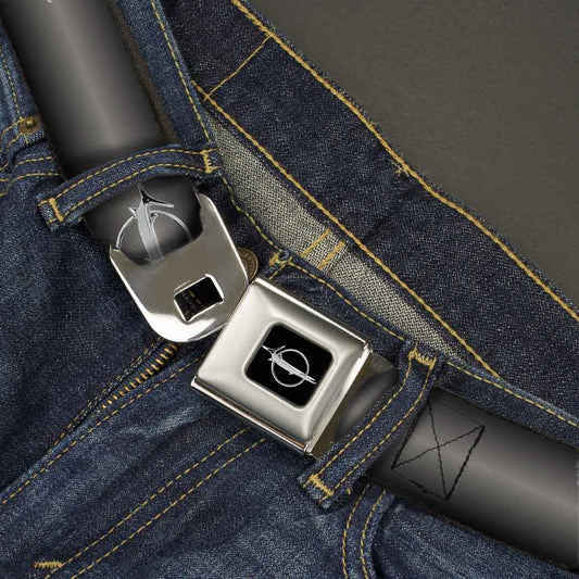 Barracuda Emblem Full Color Black Silver Seatbelt Belt - Barracuda Emblem Repeat Gray Fade/Silver Webbing