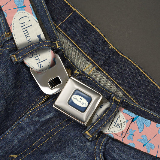 GILMORE GIRLS Title Logo Full Color Blue/White Seatbelt Belt - GILMORE GIRLS Title Logo and Dragon Flies Scattered Pink/White/Blues Webbing