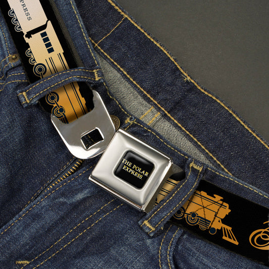 THE POLAR EXPRESS Text Logo Full Color Black/Golds Seatbelt Belt - POLAR EXPRESS Train Cars Black/Golds Webbing