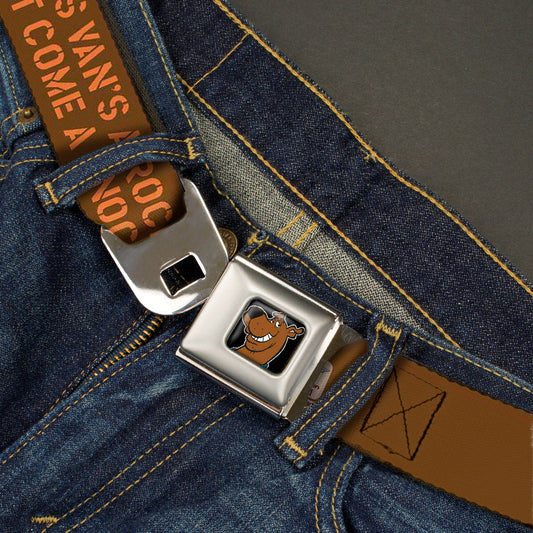 Scooby Doo Face Full Color Black Seatbelt Belt - Mystery Machine IF THIS VAN'S A ROCKIN Brown/Orange Webbing