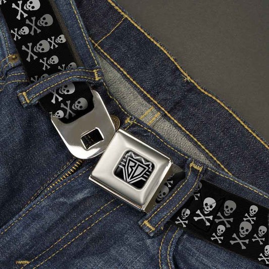 BD Wings Logo CLOSE-UP Full Color Black Silver Seatbelt Belt - Top Skulls Black/White Webbing