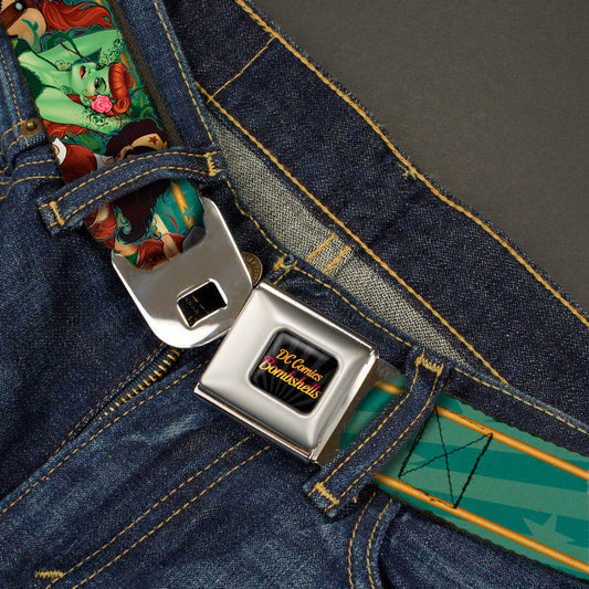 DC Round Logo Black/Silver Seatbelt Belt - DC Comics 3-Superheroine/2-Villain Character Collage Webbing