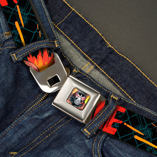 Bane Face Explosion Full Color Seatbelt Belt - BANE Pose/Explosion Bat Signal/Chanlink Black/Gray/Reds Webbing