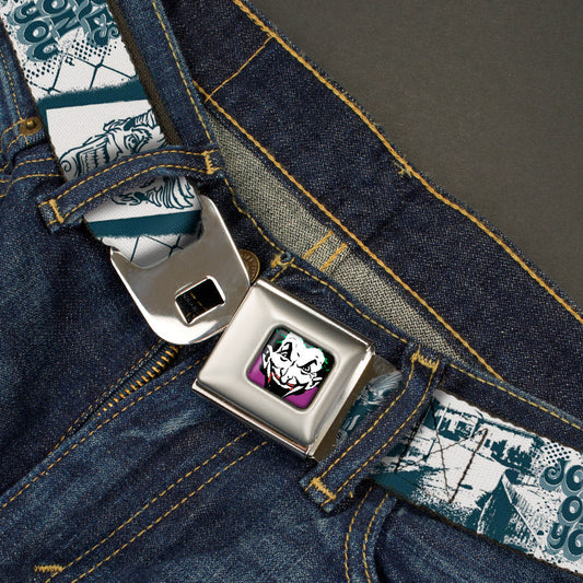 Joker Face Full Color Seatbelt Belt - Joker Spray Painted/Street Pose JOKES ON YOU White/Grays Webbing