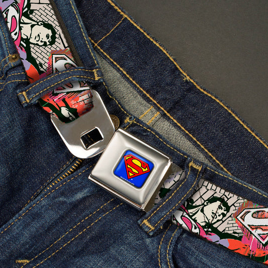 Superman Full Color Blue Seatbelt Belt - Superman Color Flying Bricks Scene Webbing
