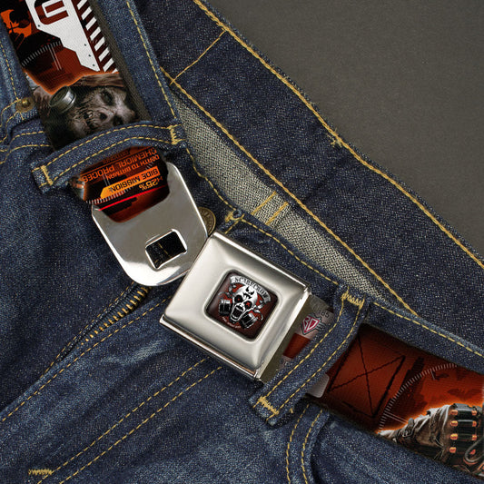 SCARECROW Arkham Knight Skull Icon Full Color Reds Seatbelt Belt - SCARECROW Arkham Knight Profile/2-Poses Orange/Black/White Webbing