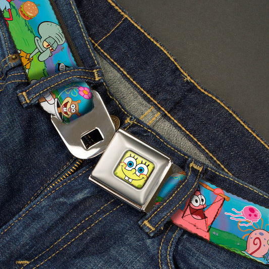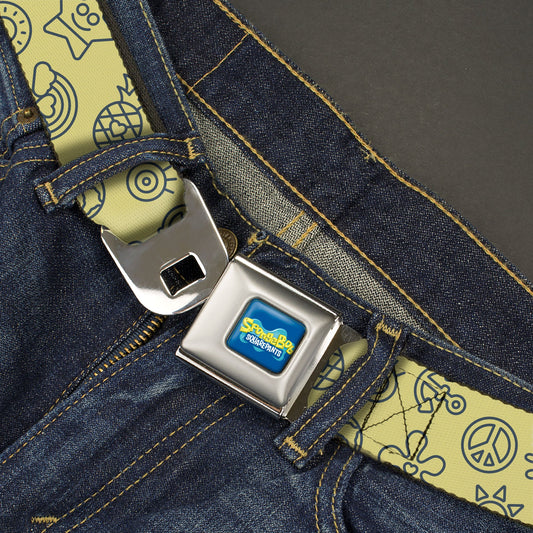 SpongeBob SquarePants Logo Full Color Blues Seatbelt Belt - SpongeBob SquarePants and Friends Line Art Collage Yellow/Gray Webbing