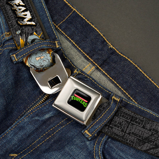Classic TMNT Logo Full Color Seatbelt Belt - ROCKSTEADY Break Through Pose/BEATDOWN Black/Grays/Gold Webbing