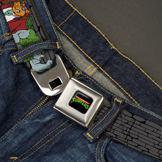 Classic TMNT Logo Full Color Seatbelt Belt - TMNT Rocksteady & Bebop Poses Bricks Gray/Black Webbing