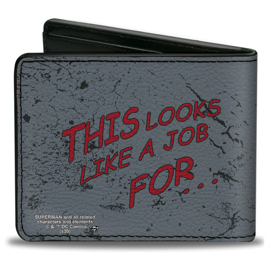Bi-Fold Wallet - Superman THE ORIGINAL MAN OF STEEL Badge + Quote Weathered Grays Red