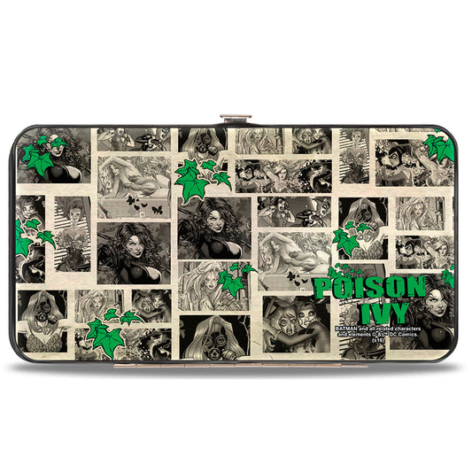 Hinged Wallet - Poison Ivy Pose + Logo Ivy Comic Scenes Grays Greens
