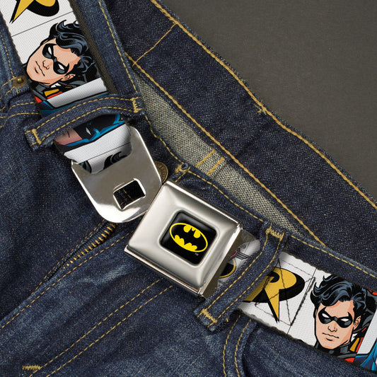 Batman Full Color Black Yellow Seatbelt Belt - Batman & Robin Blocks White Webbing
