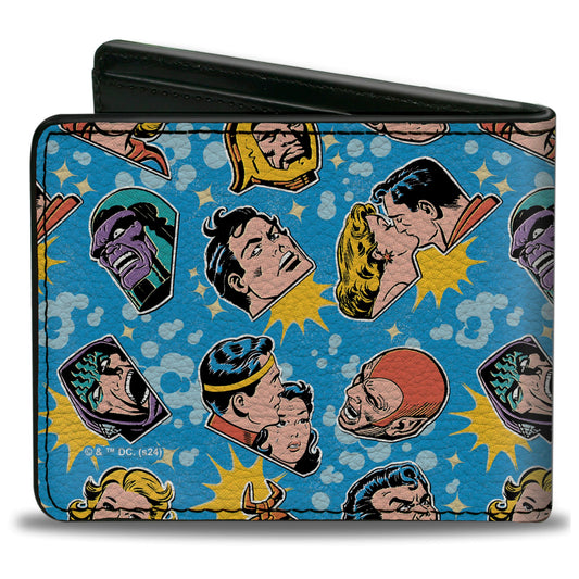 Bi-Fold Wallet - Vintage Superman Supergirl and Villains Faces Scattered Blues
