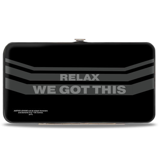 Hinged Wallet - Justice League 7-Superheroine Group Pose + RELAX WE GOT THIS Stripe Black Gray
