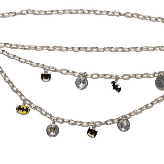 Metal Chain Belt - Silver Chain with Chibi Batman and Bat Charms