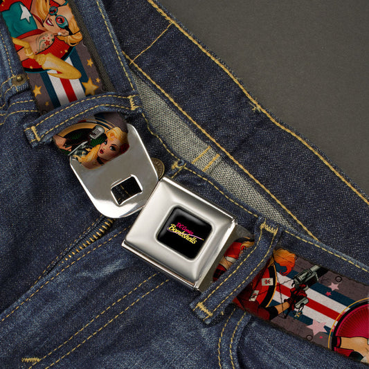 DC COMICS BOMBSHELLS Logo Full Color Black/Pinks/Yellow Seatbelt Belt - DC Bombshell Pin-Up Girls Webbing