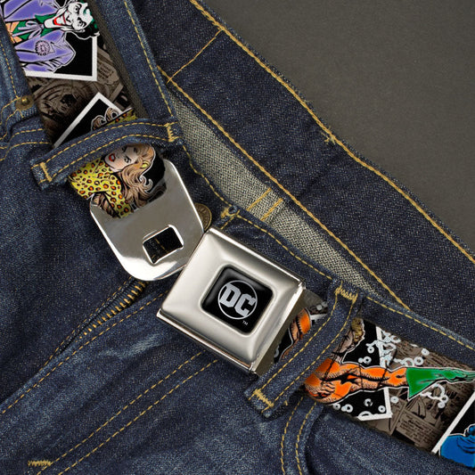 DC Round Logo Black/Silver Seatbelt Belt - DC Originals Vintage Comic Portraits/Comic Scenes Webbing