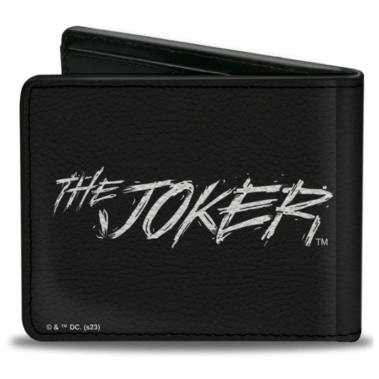 Bi-Fold Wallet - THE JOKER Smiling Pose and Text Over Eyes Black/Purples/Greens