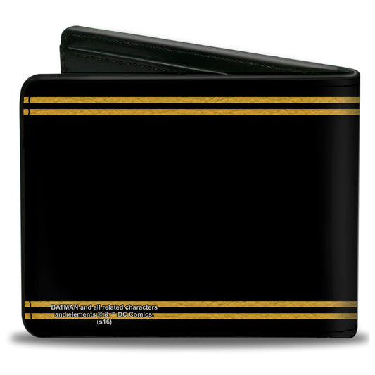 Bi-Fold Wallet - Batman Icon Centered Bat Signal Stripe Black Yellow Grays