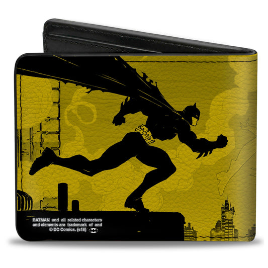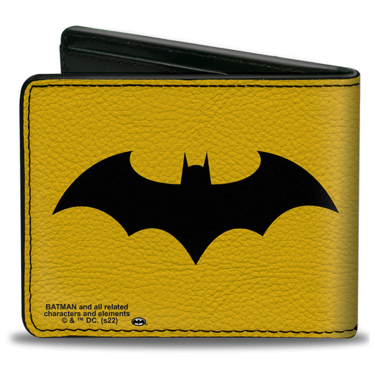Bi-Fold Wallet - Batman Tech Action Pose + Bat Logo Yellow Black White